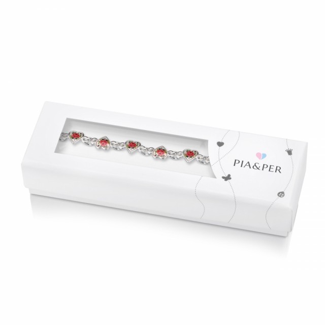 Pia&Per armbånd til jenter kommer i 3 forskjellige varianter: helarmbånd (armbånd med 8 – 10 emaljerte ledd i rekke), charms -armbånd (figaro kjede med 3 emaljerte ledd som henger) og ID -armbånd (figaro armbånd med graveringsplate og ett ledd som henger). Eventuell tekst til gravering av ID -armbånd legges inn på siden til hvert enkelt smykke. Vi gjør gravering av smykker daglig.